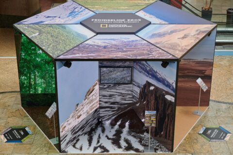Die bildstarke Werbeaktion stand unter dem Motto „Feindselige Erde – anpassen oder sterben“. Und die dreidimensional gestalteten „Lebensräume“ in dem 65 Quadratmeter großen Aufbau zeigten eindrucksvoll, welche faszinierenden Szenerien die Natur zu bieten hat. Die landschaftliche Schönheit wirkte dabei immer gekonnt im Kontrast zu den unwirtlichen Lebensbedingungen. In der bienenwabenförmigen Konstruktion spiegelte sich so die Begeisterung für die unberührten Flecken der Welt wider, die auch die Explorer bei ihren packenden Reportagen antreibt – zu sehen in spektakulären Fotomotiven und mitreißenden Dokumentationsfilmen.