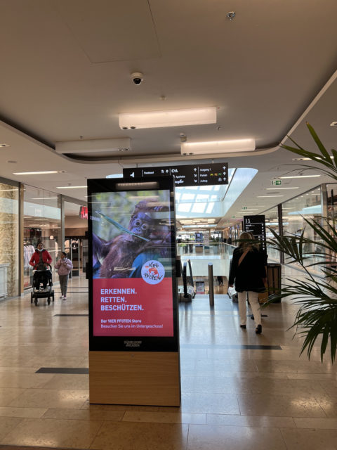 Vier Pfoten kümmert sich weltweit um Tiere, die durch Menschen in Not gekommen sind oder Leid erfahren haben. Wie engagiert die Verantwortlichen sich für die Vierbeiner einsetzen, können Besucher in Pop-Up-Galleries in den URW-Malls herausfinden. Die interaktive Erlebnis-Ausstellung „Erkennen. Retten. Beschützen.“ gibt dort einen Einblick in die Arbeit der Tierschützer. Sie war bereits für jeweils sechs bis acht Wochen in drei Shopping Destinationen von URW zu sehen: Nach dem Auftakt im Palais Vest in Recklinghausen ging es weiter in die Düsseldorf Arcaden, bevor die Roadshow ins Westfield Centro Oberhausen zog, wo sie noch für kurze Zeit zu sehen sein wird.