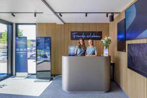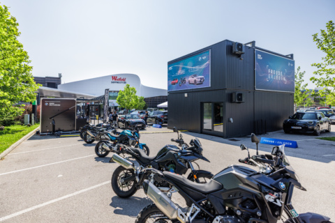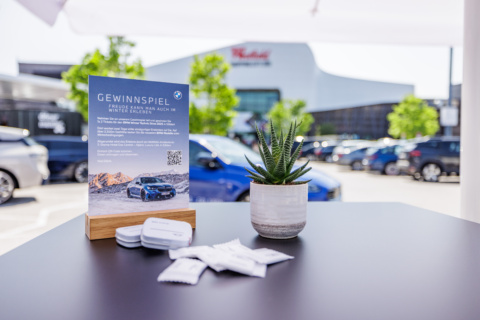 Besonders die 3D-LED-Wand an der Außenseite zog mit ihren eindrucksvollen Darstellungen der Elektromodelle des bayrischen Automobilherstellers zahlreiche Blicke auf sich. Im Inneren erwartete die Besucher ein modernes Raumkonzept: Im Erdgeschoss gab es eine stilvolle Lounge mit Check-in-Bereich sowie eine interaktive Wand, die spannende Einblicke in die BMW Elektro-Familie bot, inklusive eines Gewinnspiels mit attraktiven Preisen. Im Obergeschoss rundeten eine Bar mit Erfrischungen und eine stilvolle Dekowand das Wohlfühlambiente ab.