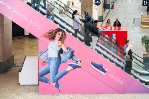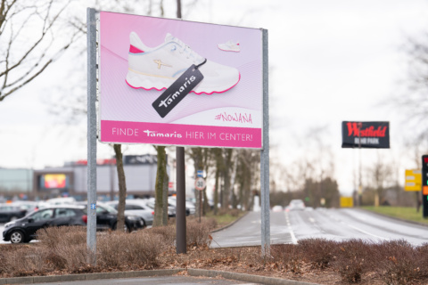 Im Westfield Ruhr Park setzt hingegen ein riesiges Banner am P1-Parkplatz bereits bei der Ankunft frühlingshafte Akzente. Auch die auffällige Eingangsbeklebung ist für die Besucher des Bochumer Flagship-Centers nicht zu übersehen. Die leuchtenden Visuals der neuen Schuh-Kollektion vermittelten Leichtigkeit und Frische und laden direkt dazu ein, den neuen Look des Frühlings zu entdecken.