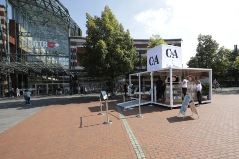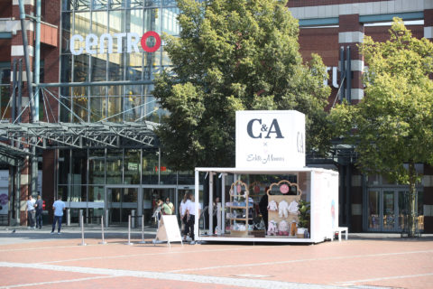 Um möglichst viele Eltern auf die Aktion aufmerksam zu machen, hatte das Modeunternehmen eine echte Pole-Position für seinen Baby-Pop-Up gewählt: Direkt vor dem hochfrequentierten Eingang des Oberhausener Shopping-Paradieses auf dem Platz der Guten Hoffnung – zentraler geht’s nicht. Auch das große C&A Logo auf dem Dach des Pop-Up-Stores war nicht zu übersehen. Und so lockte der stylische Shop mit offenen Ladenfronten zahlreiche Interessierte an. Die offene Form hatte übrigens noch einen weiteren Vorteil: Sie garantierte allzeit freie Fahrt für Kinderwagen.