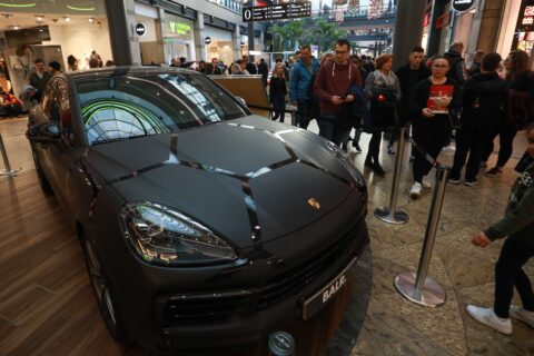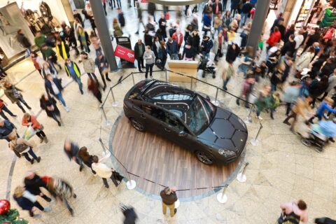 Ein Porsche mitten im Westfield Centro: Zur Eröffnung des ersten Shops in Deutschland setzte die Mode- und Lifestyle-Marke BALR. auf einen hochmotorisierten Auftritt. Doch nicht nur wegen des mattschwarzen Luxuswagens war der niederländischen Edel-Brand aus Amsterdam die ungeteilte Aufmerksamkeit der neugierigen Mall-Besucher sicher. Das vom Profifußballer Demy de Zeeuw gegründete Label nutzte auch die einzigartigen Werbemöglichkeiten des beliebten Einkaufs- und Freizeitzentrums, um das Store-Opening gebührend zu feiern. Gut zwei Wochen lang begleiteten die vier Großbuchstaben und das markante schwarz-weiße Design Kunden auf ihrem Weg durch die weitläufigen Ladenstraßen.