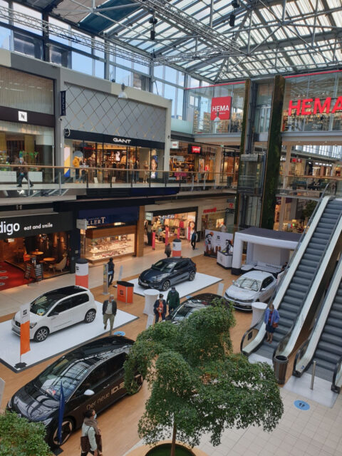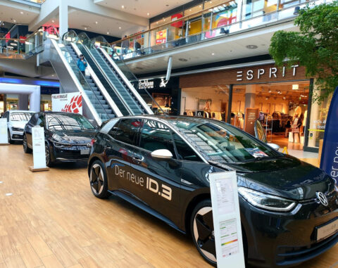 Mit dem E-Auto direkt ins Shopping-Center fahren – und zwar wortwörtlich: Dieses Experiment hat der lokale Autohändler „Will hier raus“ im Oktober 2020 gestartet und gleich mehrere, brandneue, vollelektrische Cityflitzer von VW und Seat mitten auf der Arena Plaza geparkt. Der Anbieter war aber keineswegs auf der Suche nach einem besonders günstig gelegenen Ausgangspunkt für einen Einkaufsbummel durch die weitläufigen Ladenstraßen des Westfield Donau Zentrums. Die PS-starke Promotion präsentierte den zahlreichen Center-Besuchern vielmehr das Angebot an praktischen Kleinwagen verschiedener Hersteller.